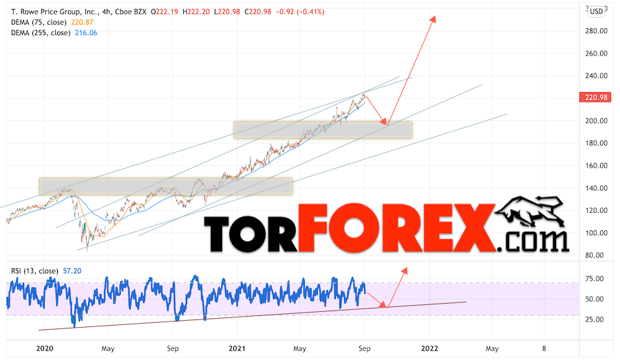 Мы также учитываем технический, фундаментальный анализ акций, новостной фон, общая геополитическая ситуация в мире и другие, более мелкие факторы. В прогнозах акций указаны целевые уровни для акций компании TROW, причем как подъёма так и вероятного падения.