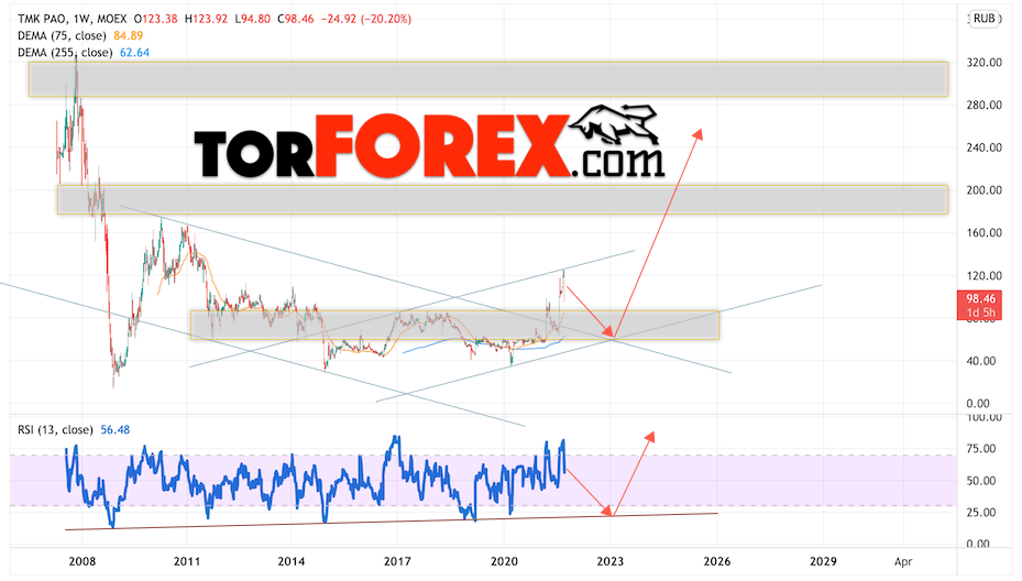 Стоит ли покупать или продавать акции ТМК сегодня? До каких уровней могут расти акции этой компании через год, два, три? Сколько будут стоить бумаги ТМК в 2021, 2022, 2023 годах? Мы давно составляем прогнозам курсов валют, а также можем предсказать поведение фондового рынка с помощью технического анализа и простых индикаторов.