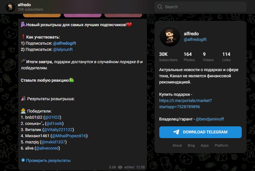 Обзор и отзывы о Телеграм-канале Alfredo: стоит ли доверять «подаркам» от @bendjaminoff