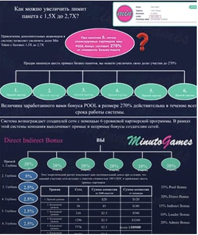 Дополнительно создатели платформы предлагают зарабатывать на партнерке. Это может указывать на то, что у Minutogames есть признаки пирамиды.
