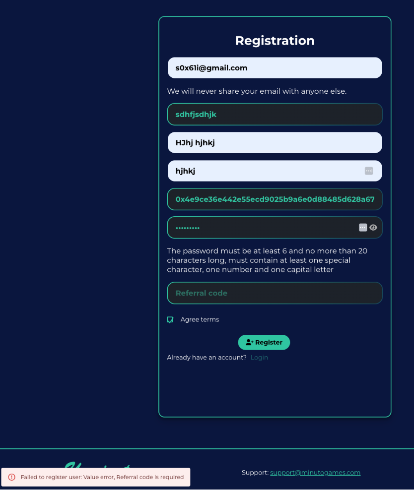 Примечательно, что попытки зарегистрироваться на сайте app minutogames com без реферального кода ни к чему не приводят.