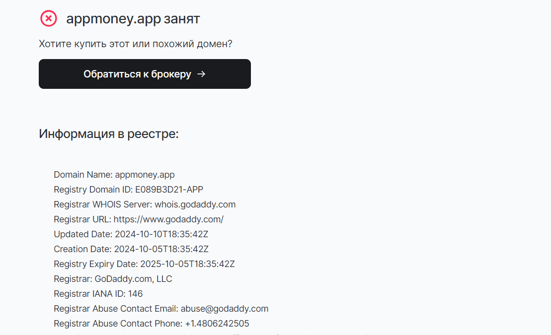 Рассматриваемый проект работает через сайт appmoney app. Также у него есть веб-ресурсы bonus app app и cashs box com. На платформе не опубликован год создания приложения. Мы проверили домен одной из площадки, и она была основана в октябре 2024 года.