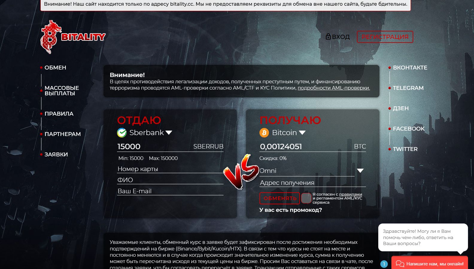 Стоит отметить, что сервис соблюдает AML, а значит нет риска получить «грязные» криптовалюты.