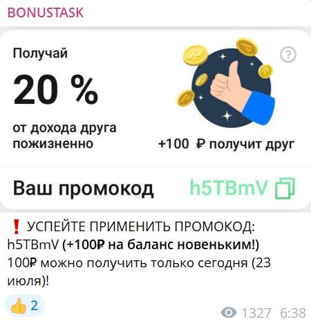 У проекта есть блог в Телеграме – BONUSTASK (bonustasks). На данный момент он заброшен с 2022 года. Но нет подтверждения, что его вели сами разработчики. В постах часто указывался реферальный код. Возможно, канал создал пользователь приложения с целью набрать рефералов и больше заработать.