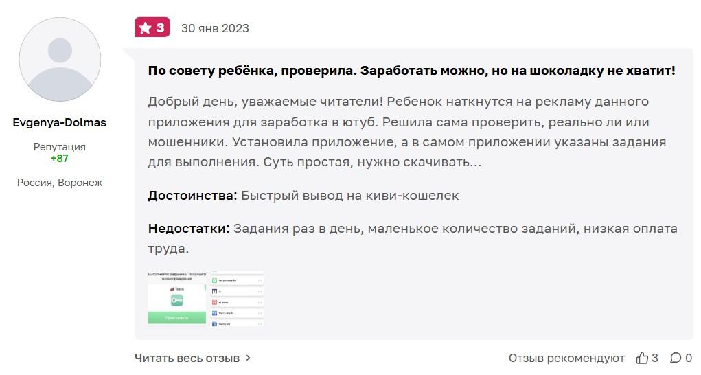 Поэтому заработать здесь большие деньги не удастся. К тому же в день дают ограниченное число заданий. В среднем доход пользователей составляет 7-20 рублей в день. Средства начисляются сразу после выполнения задания. Вывести их можно на электронный кошелек «Юмани» и баланс телефона. Также есть реферальная система, которая позволяет получать бонусы.