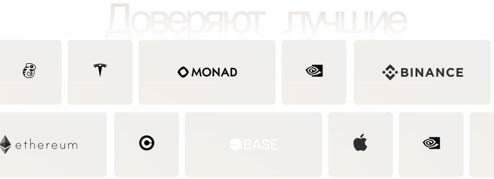 На веб-странице проекта нет сведений о том, на каких биржах можно купить токен BSB. Однако здесь представлен список известных зарубежных компаний, которые, якобы, доверяют новой крипте и готовы вложить в нее деньги.