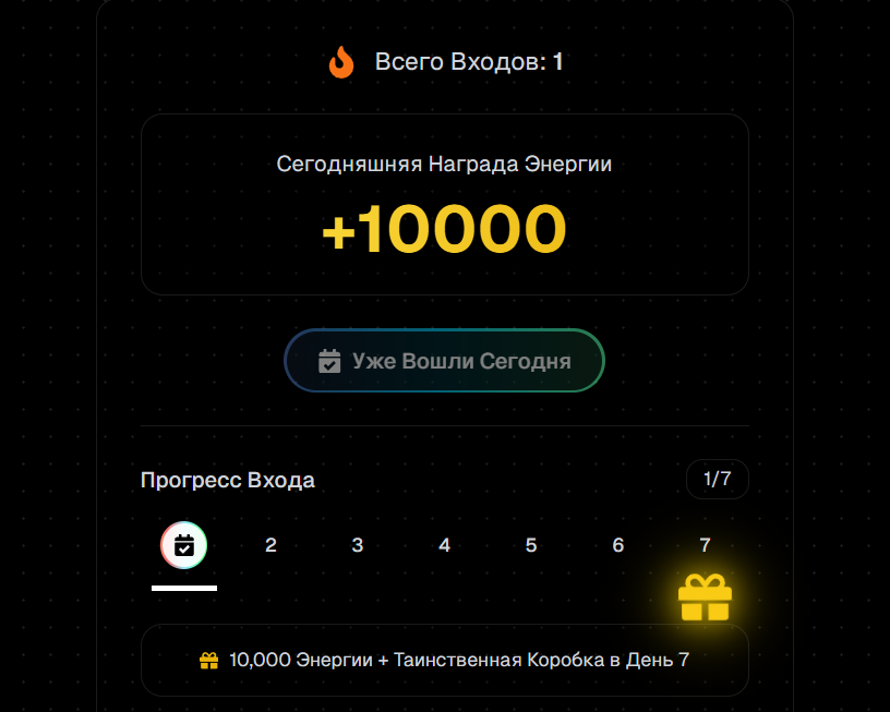 - задания на социальную активность — подписка на каналы проекта, лайки, репосты и комментарии в соцсетях и пр., можно заработать энергию и боксы.