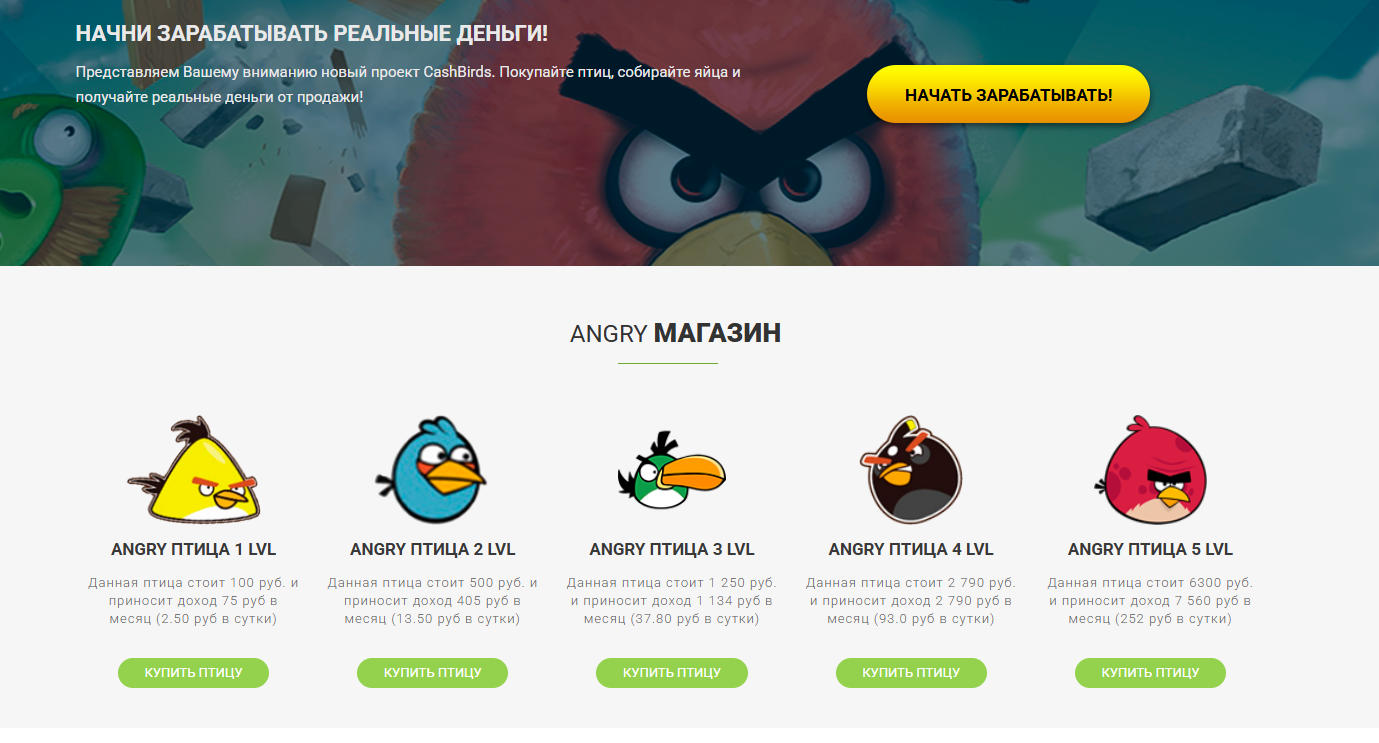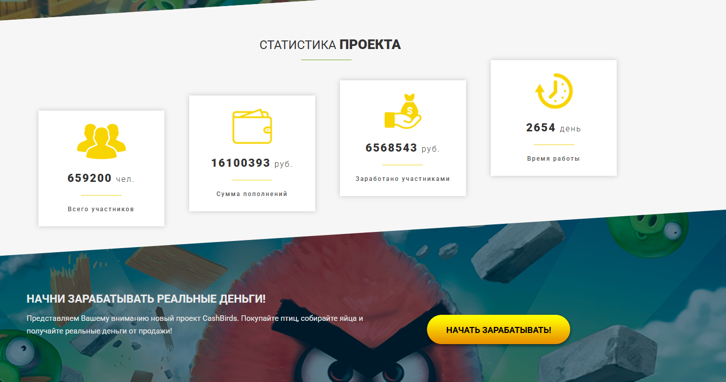 Cash Birds является продолжением Rich Birds, который был популярным в 2014-2015 годах. Проект часто открывает новые сайты, меняет названия, ставит другие картинки. Но суть всегда остается прежней.