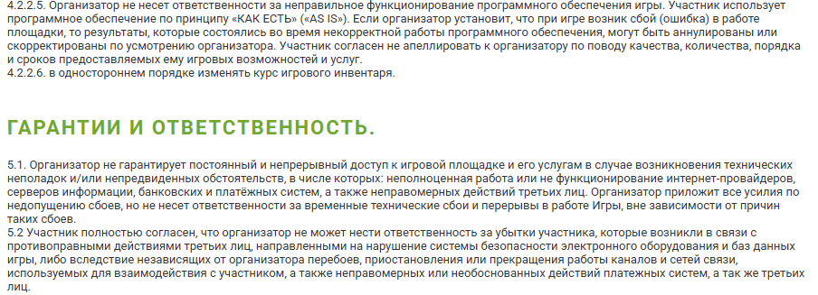 - Пользователю в любой момент может быть отказано в выводе денег.