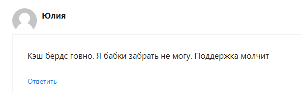 - Жалобы на мошенничество негативно сказываются на репутации Cash Birds.