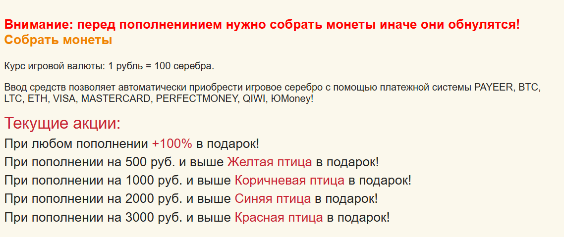 Авторы проекта не только часто меняют зеркала сайта, но и правила по выводу средств. Например, обязательную покупку очередной супер-птицы за $300.