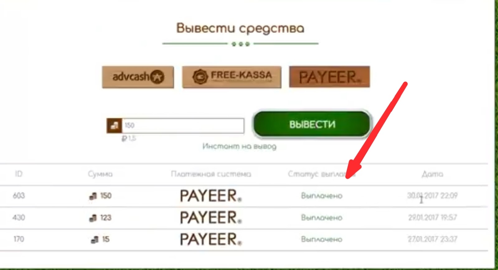 Проект поддерживал операции через Payeer, AdvCash и Free-Kassa.
