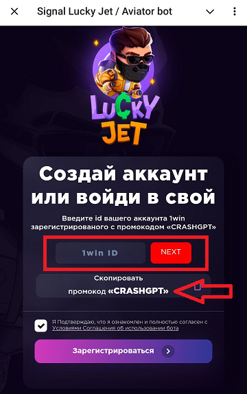 У Ивана есть ТГ-бот Casinohack_bot, который якобы подключается к слотам и взламывает их при помощи специальной программы. Новичка встречает приветственный пост с красивой анимацией командной строки. Со стороны это похоже на хакерскую программу для взлома. На деле открывается мини-приложение, которое перенаправляет игрока на регистрацию в онлайн-казино. Там нужно ввести ID-аккаунта, полученный после регистрации по промокоду.