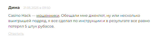 Оставьте Ваш отзыв о работе с Casino Hack