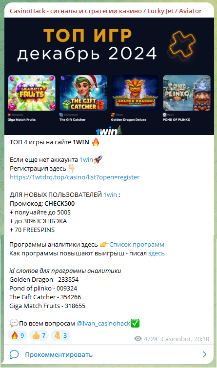 Что выкладывает в ТГ-канале Casino Hack его владелец Ivan Casinohack