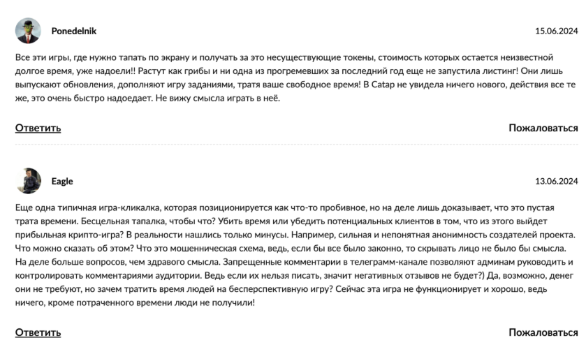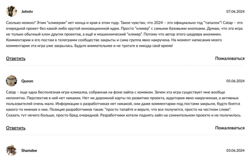 Некоторые вовсе называли Catap скамом. Вероятно, они предвидели, что команда основателей с самого начала планировала развести пользователей.