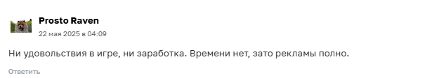 - отзывы у проекта негативные, пользователи сообщают, что игра неинтересная и содержит много рекламы, зарабатывать не дает.