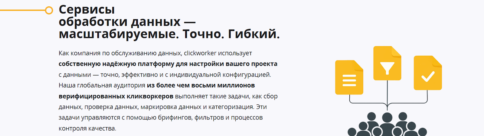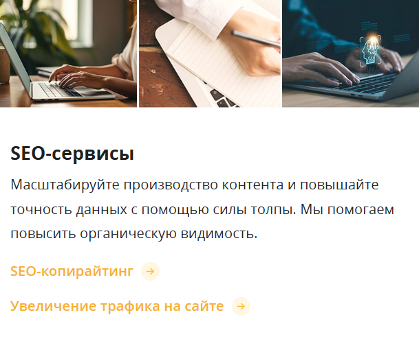 Команда готова заняться любыми целевыми исследовательскими потребностями – будь то адресные и клиентские данные или ценообразование. При этом WorkPlace ClickWorker com гарантирует именно индивидуальные решения. Для уточнения условий обслуживания необходимо обратиться напрямую к поддержке.
