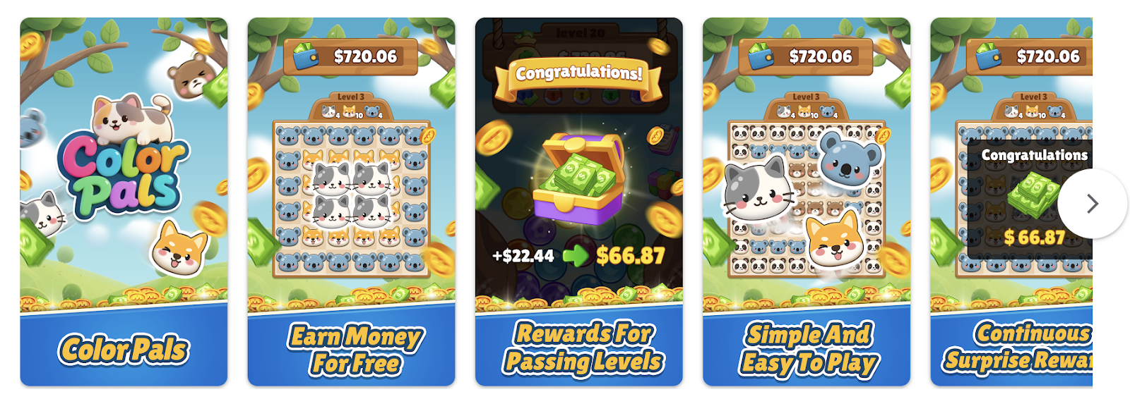 Так, Color Pals заявляет о себе как о способе легко заработать деньги, но при этом ничего не выплачивает участникам. Сам по себе игровой проект выглядит как обычный казуальный продукт для коротких игровых сессий. Недостатки: