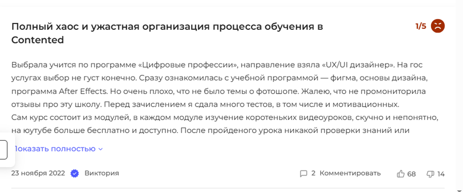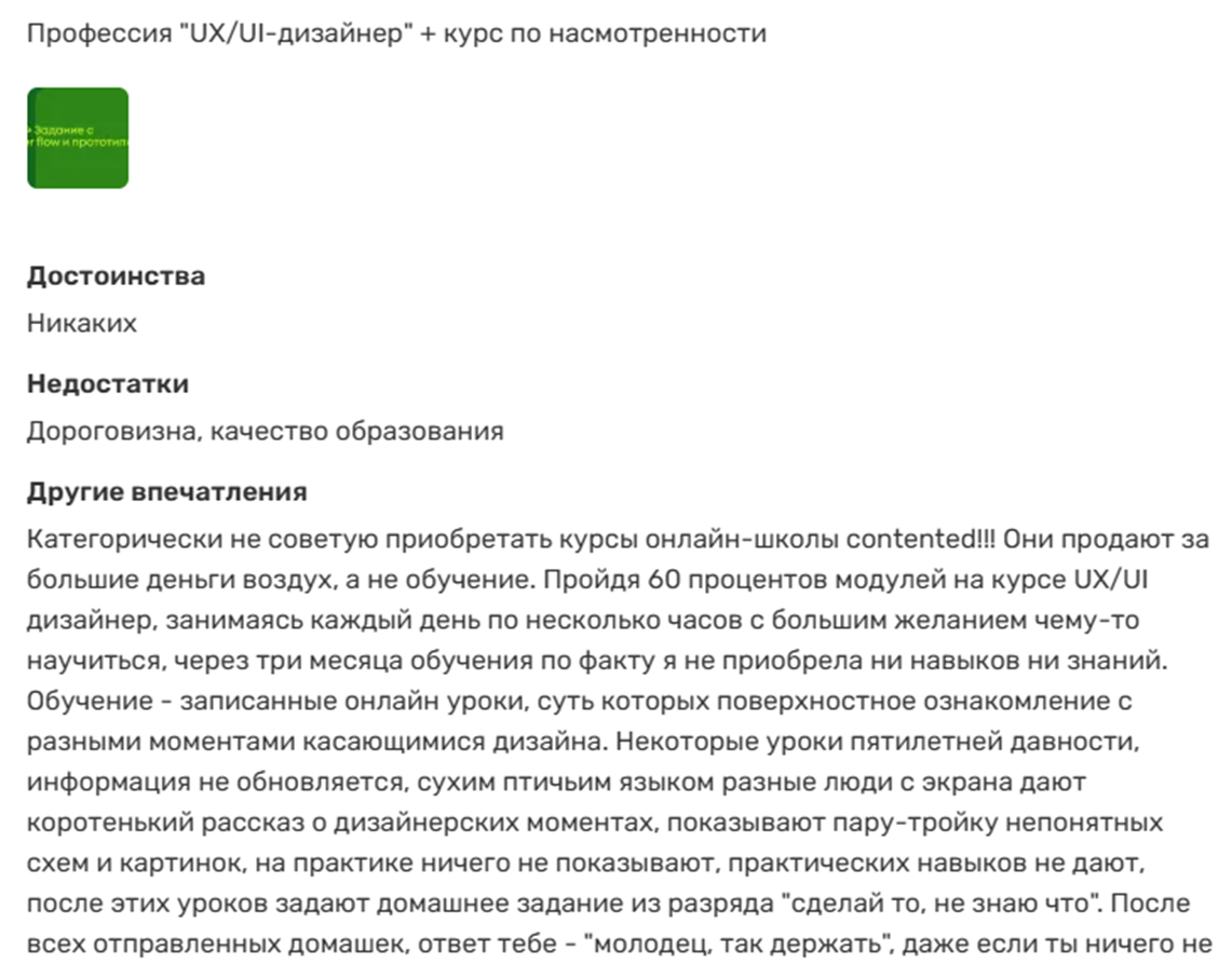 Некоторые в отзывах на «Контендет» пишут, что зря потратили деньги, тем более, что стоимость курсов очень высокая.