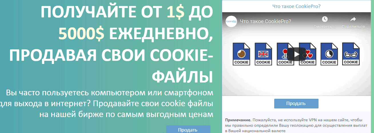 «КукиПро» — цифровая платформа, на которой каждый клиент может продать свою историю вместе с куками. Таким образом, компании, которым нужны эти данные, платят десятки тысяч рублей за оценку предпочтений клиентов. Стоит отметить, что метод не новый и больше известный среди новичков, так как опытные понимают всю суть происходящего.