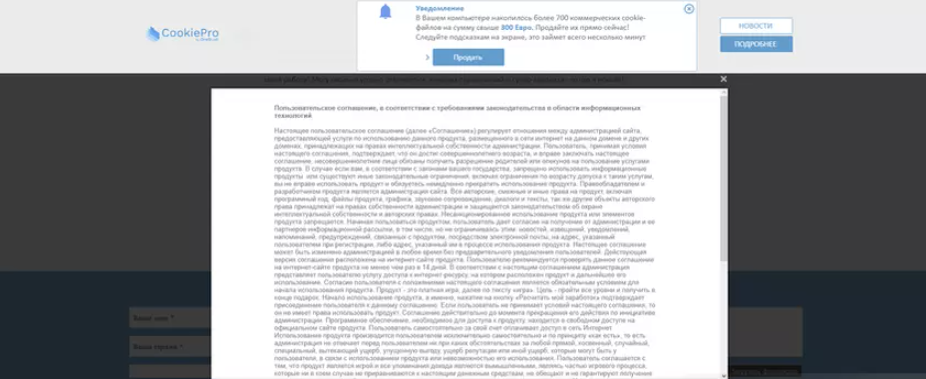 Выше на скриншоте видно основное УТП проекта — предложения заработка до 5000 долларов за счет результата серфинга интернета. Далее идет прогрев касательно того, что куки можно крайне эффективно продавать через цифровую инфраструктуру CookiePro by Onetrust и получить за это кеш в долларах. Однако, создатели не учли важный факт — поисковый алгоритм тщательно анализирует содержимое и в целом весь проект.