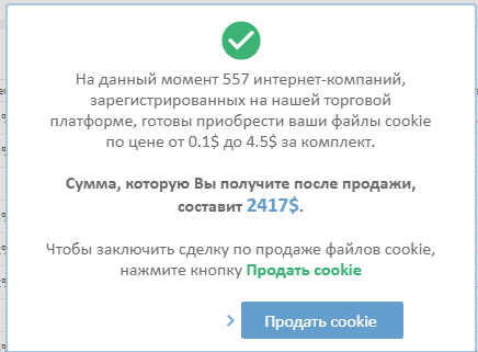 Ниже кнопка «Продать» и если кликнуть на нее, система перекинет на форму продажи. Однако, чтобы «слить» куки, надо оплатить ряд услуг или в противном случае заработать не получится.