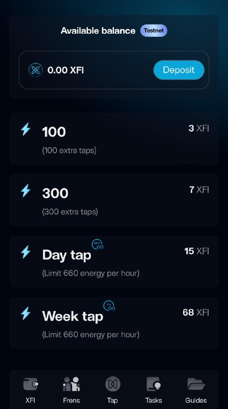 Помимо этого, юзеры также могут воспользоваться бустерами. Они не бесплатные и для того, чтобы ими воспользоваться необходимо положить на счет приложения криптовалюту XfiConsole, MPX. Эти улучшения, могут либо предоставить дополнительные тапы, либо на какое-то ослабить ограничения до 660-ти нажатий в час. Цены на них могут варьироваться от 3-ех до 68 XFI.