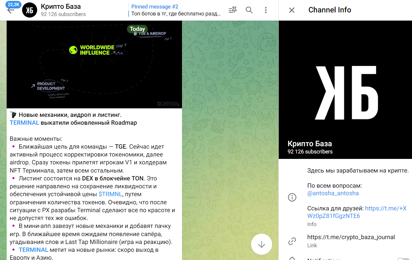 Крипто База Телеграмм канал, который посвящен обзорам крипто-проектов. Основатель обещает делиться актуальной информацией об аирдропах, тапалках и крипте. В сообществе публикуются рекомендации по заработку. Платные услуги при этом не продвигаются. Детальнее о проекте расскажем дальше.