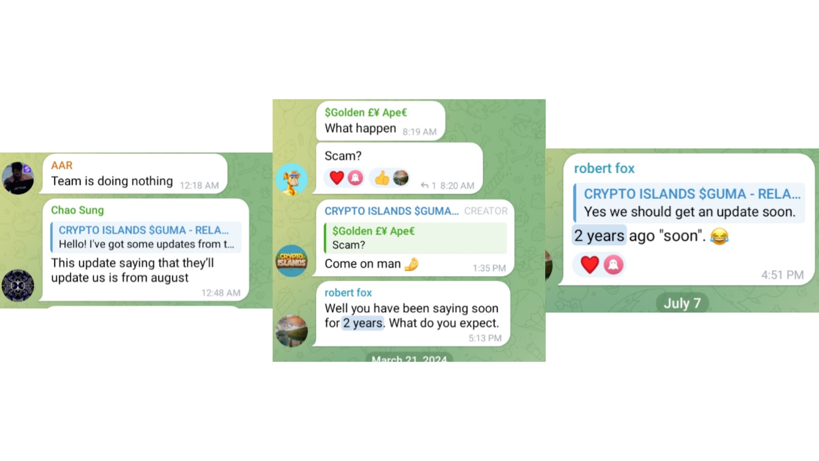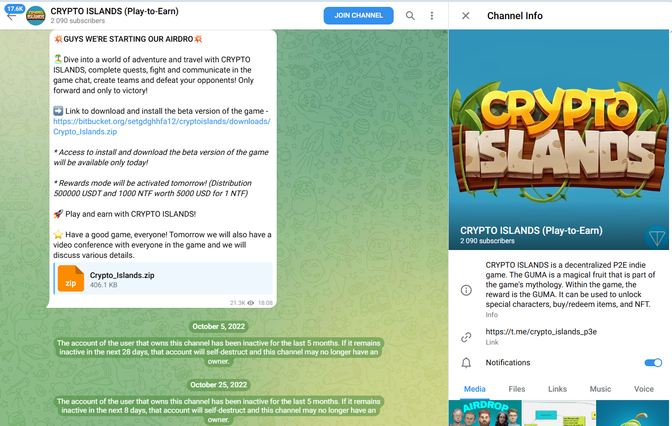 У проекта Crypto Islands P3e есть тг-чат, в котором пользователи пишут о том, что основатели не развивают проект уже 2 года.