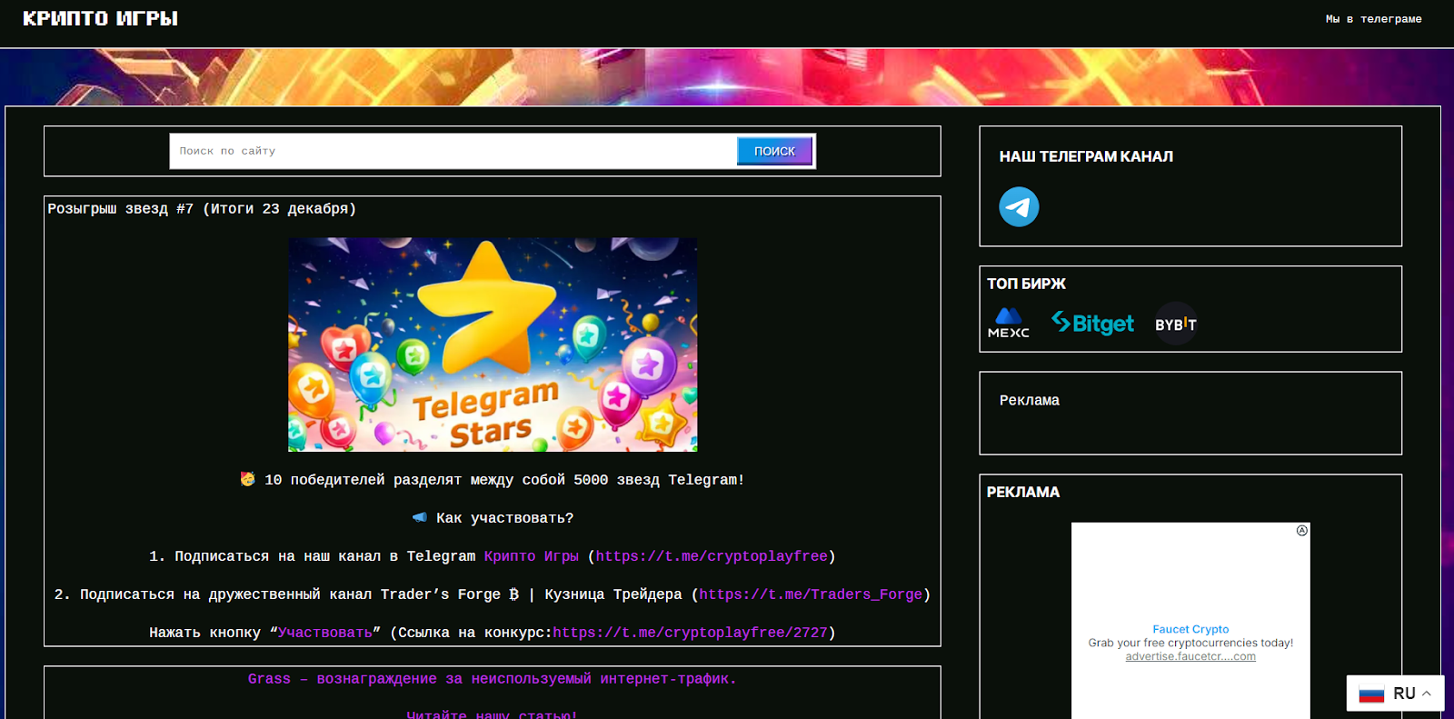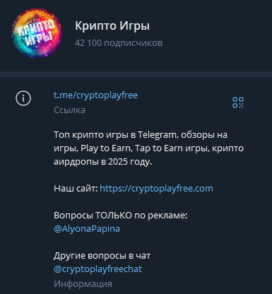 Телеграм-канал проекта Крипто игры — @cryptoplayfree.
