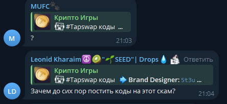 В чате периодически прилетает информация о том, что разработчики пиарят скам. Где-то 2-3 сообщения в неделю с обвинениями в том, что администрация постит новости или коды о мошеннических проектах.