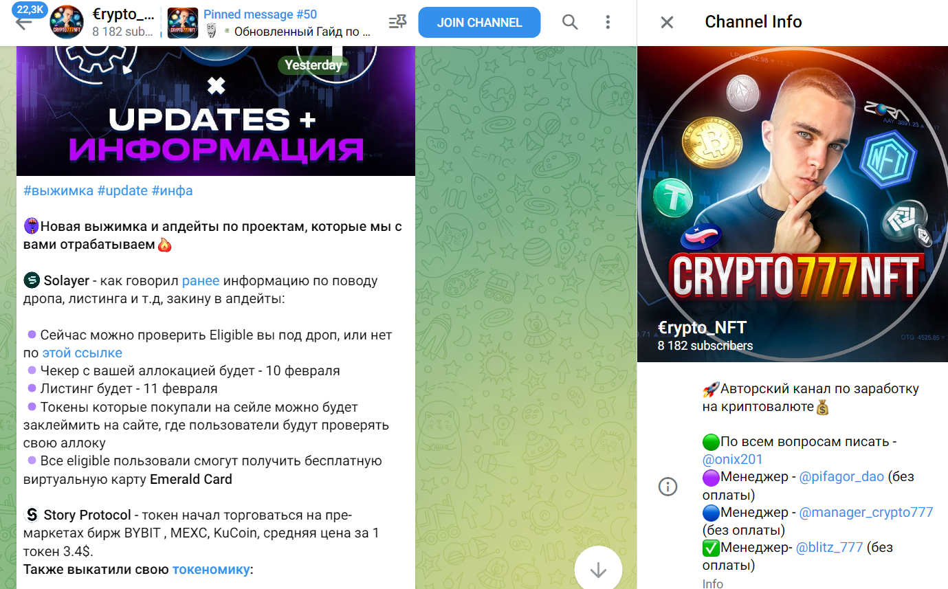 Обзор Telegram канала Crypto777nft: отзывы, деятельность основателя проекта €rypto NFT