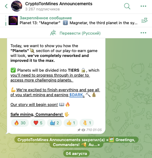 На телеграмм-канал CryptoTonMines Announcements, на 5 августа 2025-го года, подписано около 3,27 тысяч пользователей. Однако, публикации просматривают в среднем всего по 600-800 раз.
