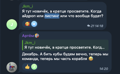 Что касается того, когда будет листинг именно крипты Cubes, то конкретной и официальной информации на этот счет нет. В телеграм-чате Punk City мы нашли только слухи.