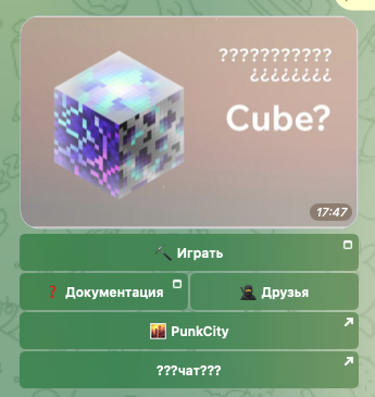 Cubes – игра в Телеграмм, в которой нужно прокачивать кирки и разбивать блоки. Является частью проекта Punks City. Команда основателей обещает наградить участников криптой.