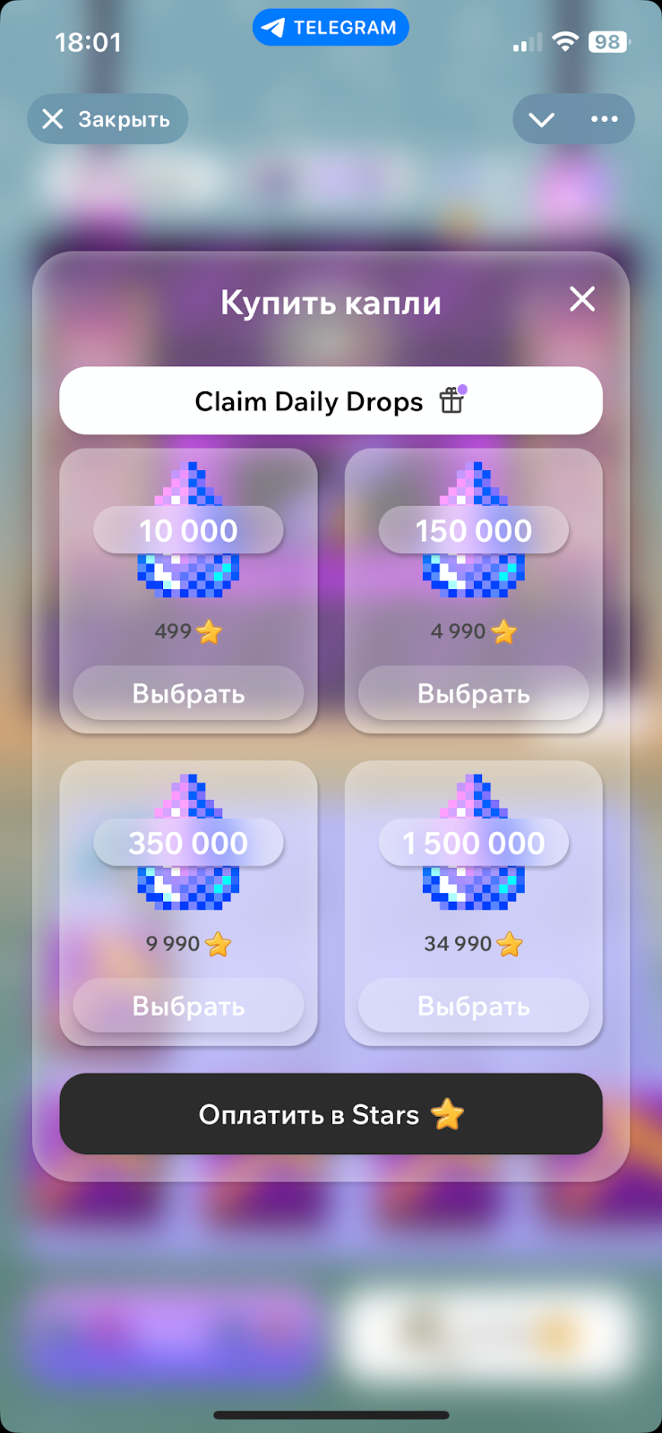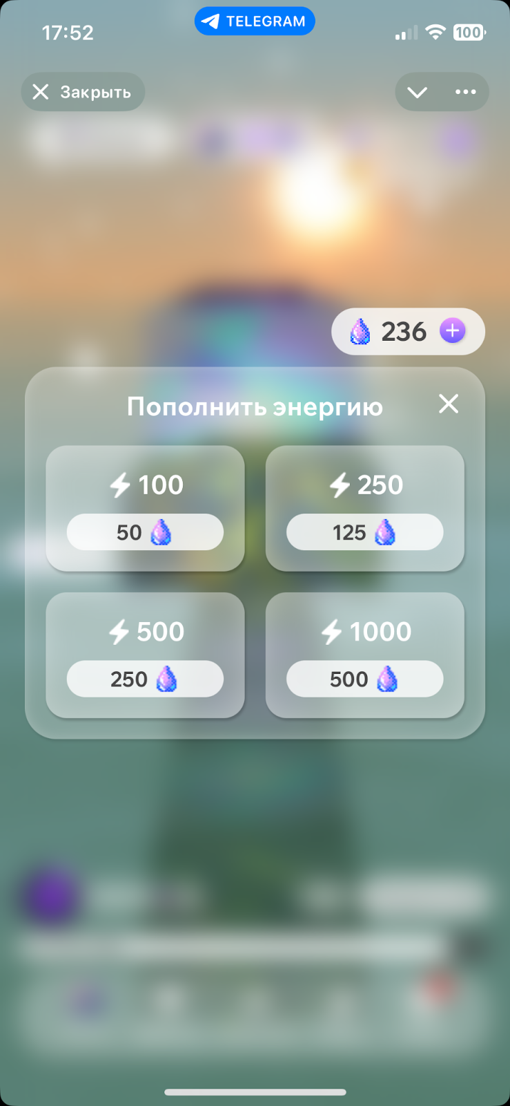 Сами кристаллы возможно зарабатывать за внутриигровые активности и покупать в магазине. Цена набора из 10 тысяч гемсов стоит 499 Telegram Stars, то есть около тысячи рублей.