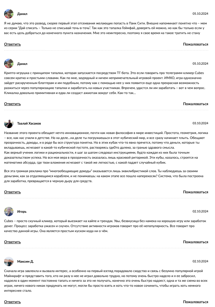 - отзывы о проекте Cubes в интернете преимущественно скептичные;
