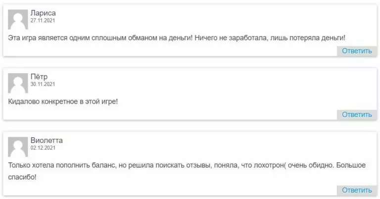 - отрицательные отзывы реальных игроков;
