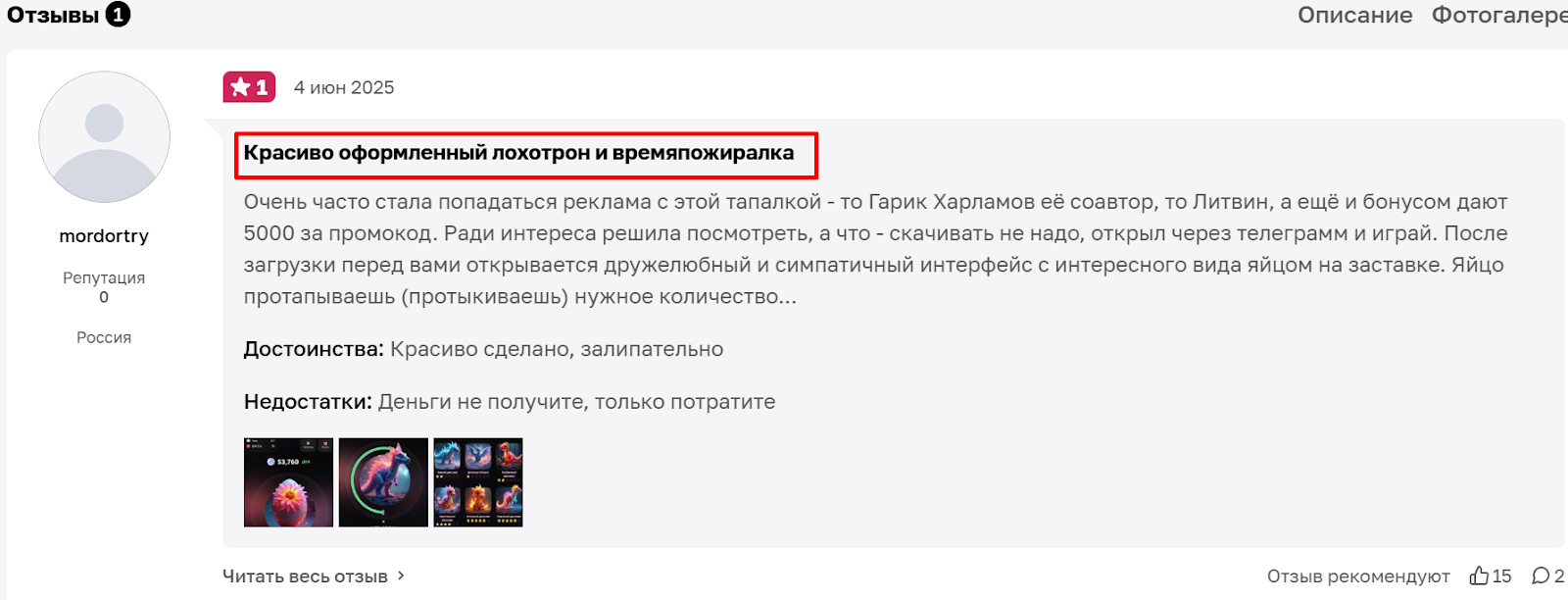• негативные отзывы о Dinotapapp bot на сторонних ресурсах;