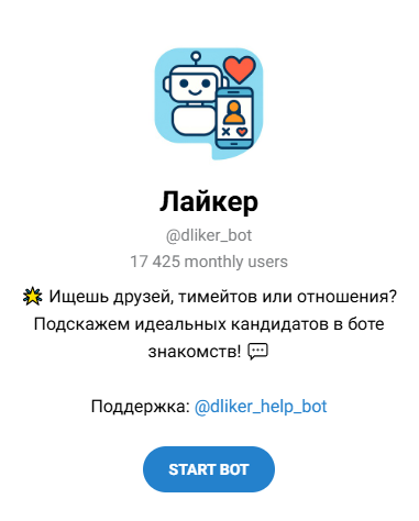 Dliker – простой и бесплатный инструмент для знакомств в Телеграме, который создавался по аналогии с Дайвинчиком, но объективных данных о его работе нет.