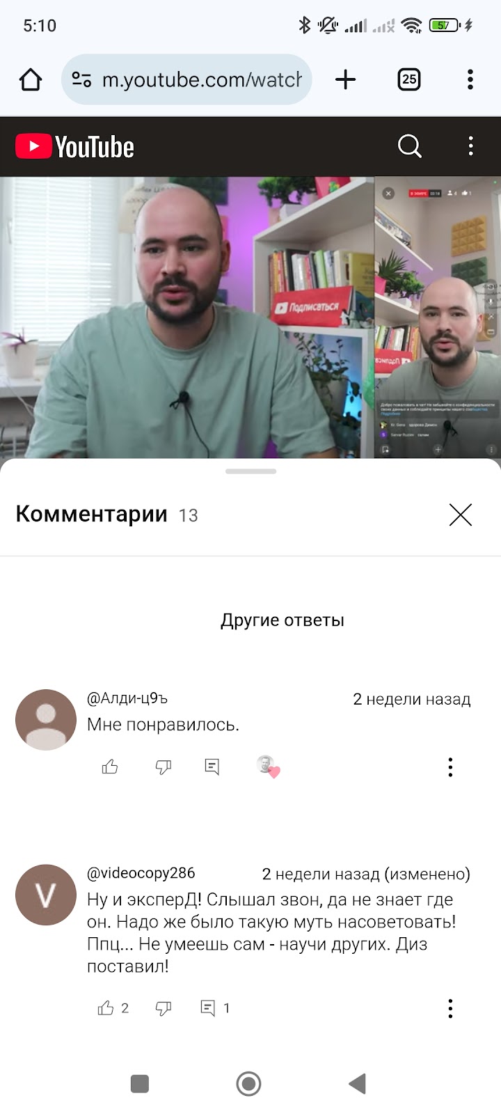 Под некоторыми роликами в Ютуб, пользователи в сомнениях и не верят профессионализму автора.