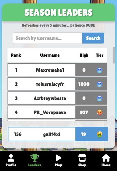 Также присутствует таблица лидеров. Она находится в разделе Leaders. В ней можно как посмотреть свои результаты, так и сравнить их с достижениями топовых пользователей.