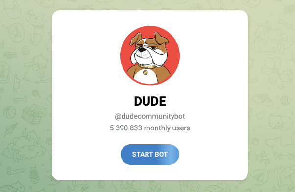 Dudecommunitybot — бот в Телеграмм, через который можно запустить тапалку Dude. Чтобы выяснить, есть ли у проекта уникальные фишки и стоит ли тратить на него время, мы собрали и проанализировали наиболее значимую информацию о данной игре.