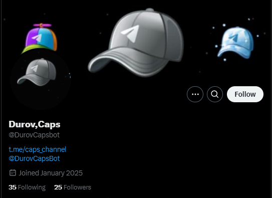 Среди социальных сетей Durovcapsbot ведет только телеграм канал, а также сообщество в X, Caps Community. в отличие от Telegram-канала, в X всего лишь 25 подписчиков, что может показывать реальную активность внутри проекта.
