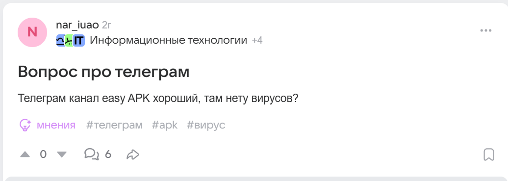 - опубликованные в Telegram Easyapk приложения могут содержать вирусы;
