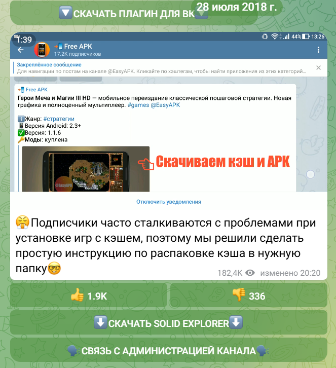 Easy apk – Telegram канал с ссылками для установки различных приложений на Android. Контент посвящен как играм, так и всевозможным программам – фото- и текстовым редакторам, образовательным приложениям, читалкам и прочим. Не спешите устанавливать файлы по прямым ссылкам из комьюнити, пока не дочитаете наш обзор до конца.