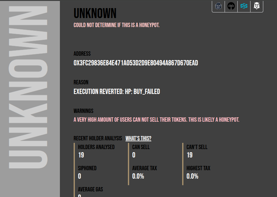 Анализ цифрового финансового инструмента показал, что очень большое количество пользователей не могут продать свои токены. Это, скорее всего, приманка, т.е. «хонейпот». Помимо заблокированной ликвидности хотим отметить следующие нюансы: