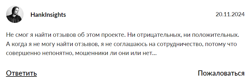 Ситуация с отзывами выглядит очень странно. Такое ощущение, что проект еще даже не запустился и не начал рекламироваться. Но уже есть проплаченные позитивные обзоры, посты с рефералками, но ни единого отзыва.