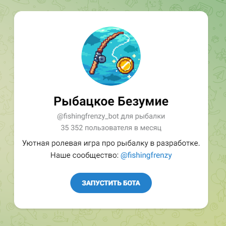 Если же вы не хотите играть через веб-версию, то есть альтернатива 一 fishingfrenzy bot в формате мини-приложения в телеграмме. Среднее количество ежемесячных пользователей в нем составляет 35 тысяч человек.